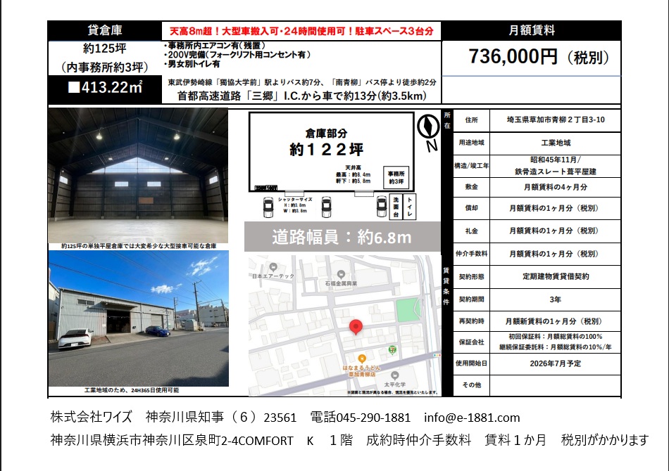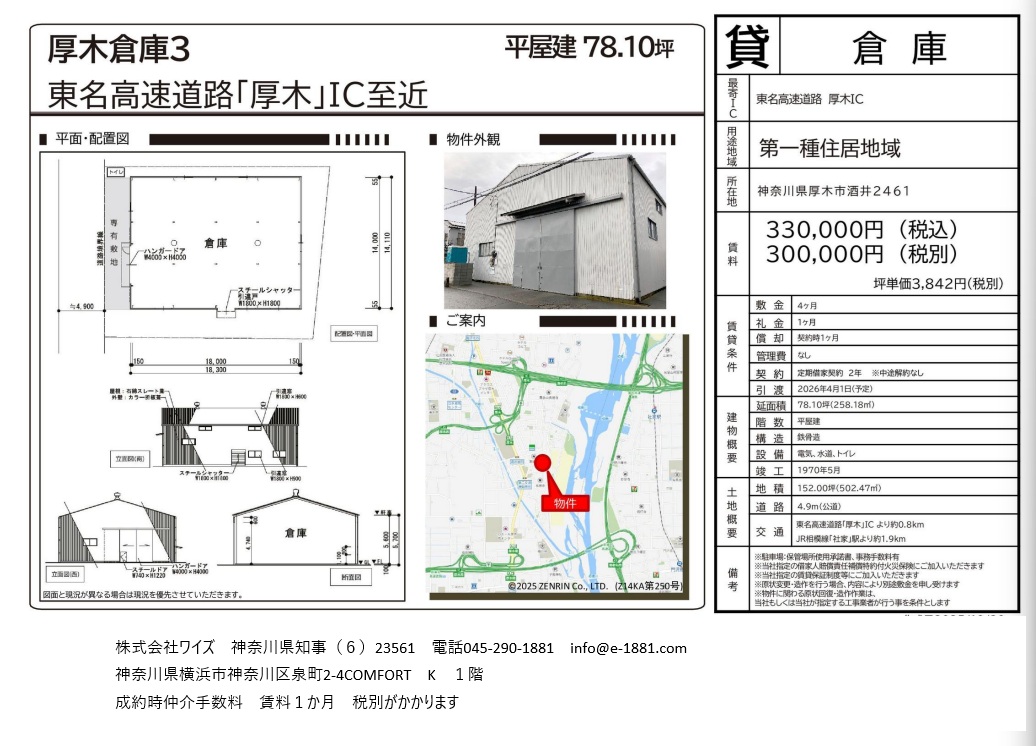貸し工場、貸し倉庫、貸し地、売り倉庫、売り工場、貸し店舗