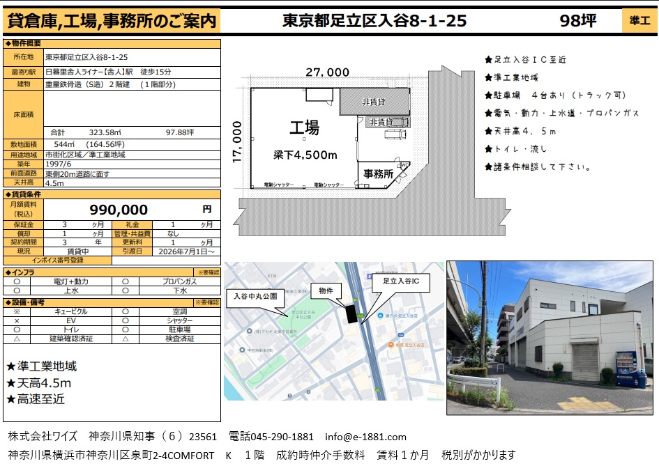 1998年の創業以来、貸し工場、貸し倉庫、貸し地、貸し店舗といった