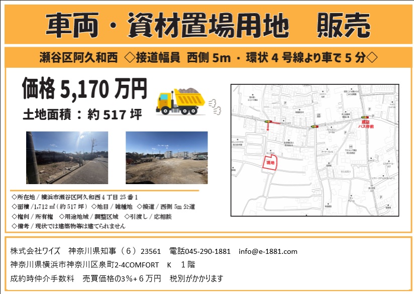 ロードサイドといった事業用不動産を探すなら首都圏物件探し隊 株式会社ワイズにご用命ください!