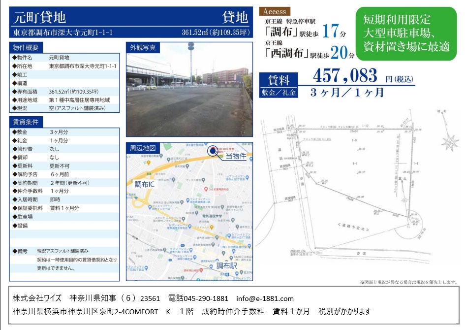 事業用不動産の検索サイト『首都圏物件探し隊』は株式会社ワイズが運営しております。