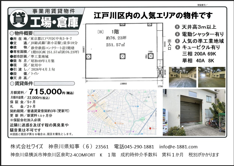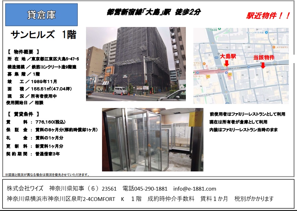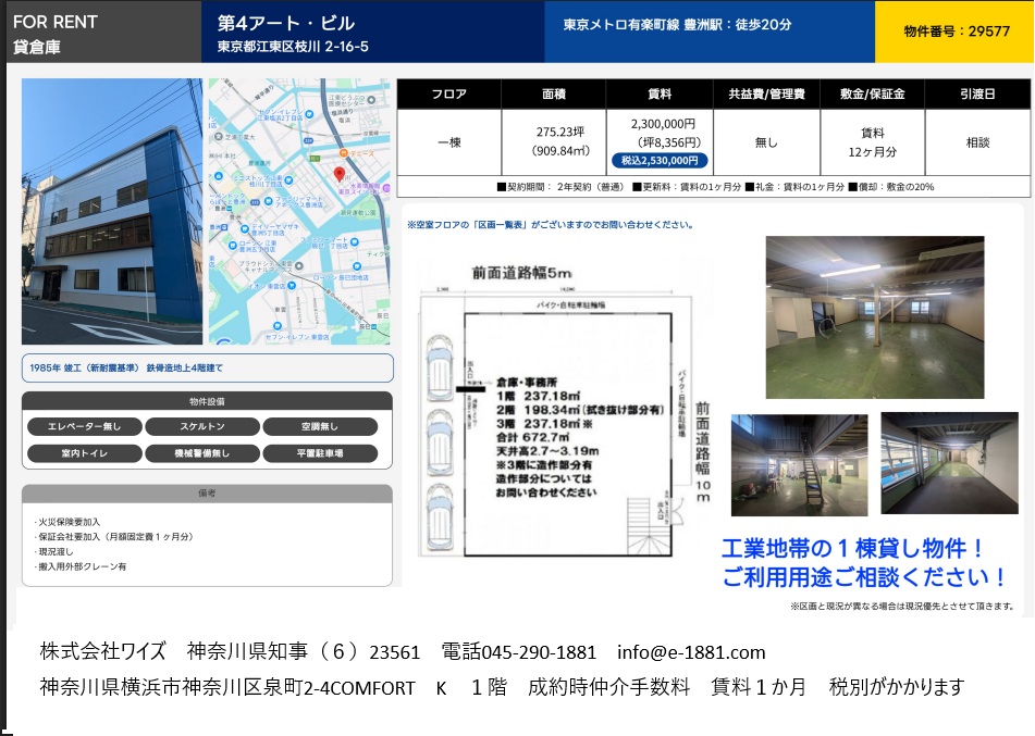 事業用不動産の検索サイト『首都圏物件探し隊』は株式会社ワイズが運営しております。
