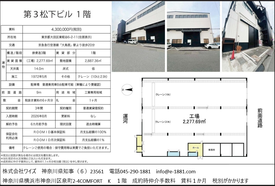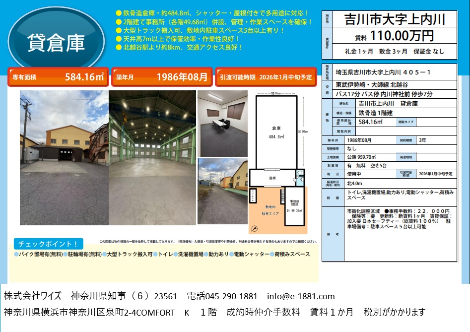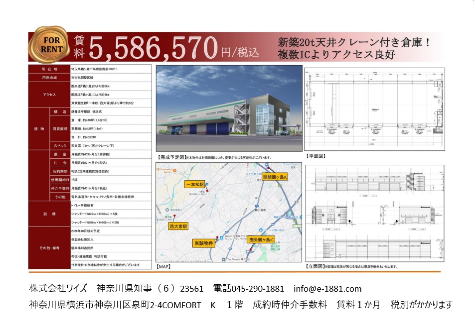 貸し工場、貸し倉庫、貸し地、売り倉庫、売り工場、貸し店舗