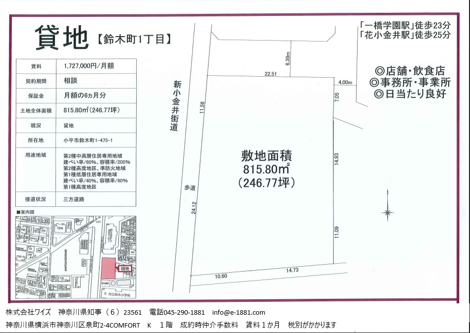 ロードサイドといった事業用不動産を探すなら首都圏物件探し隊 株式会社ワイズにご用命ください!
