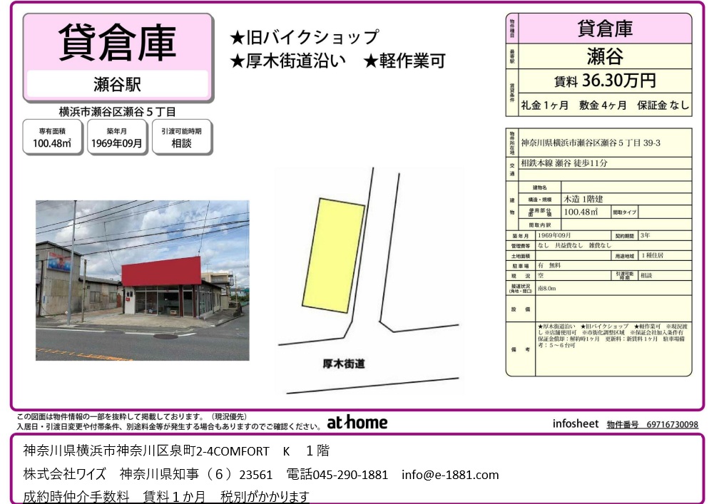 ★旧バイクショップ ★厚木街道沿い ★軽作業可