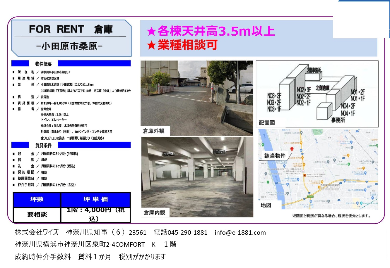 大型車両出入可能/ 駅から徒歩圏/ 天高4m以上