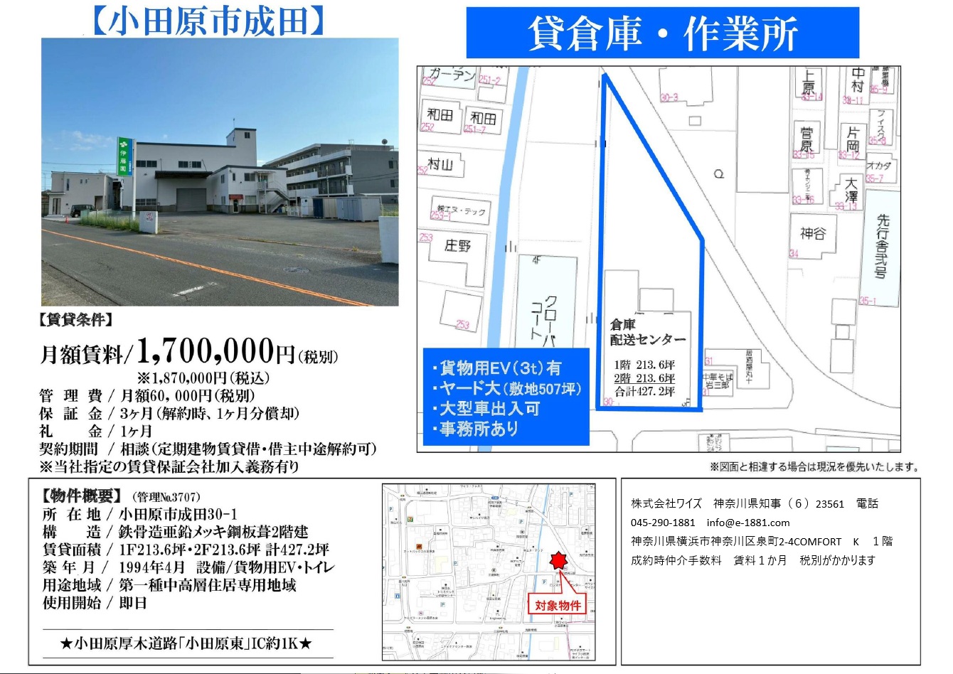 税込 湾岸線IC至近 大型車可 天井高5m以上 24時間365日使用可