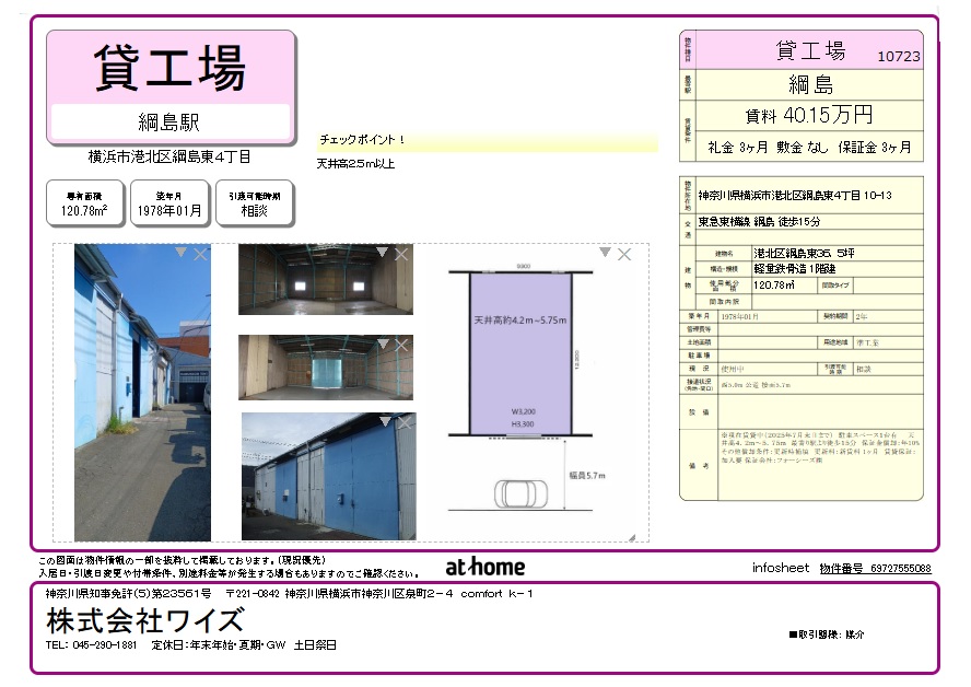 天高4m以上 貸倉庫工場リスト|ワイズ