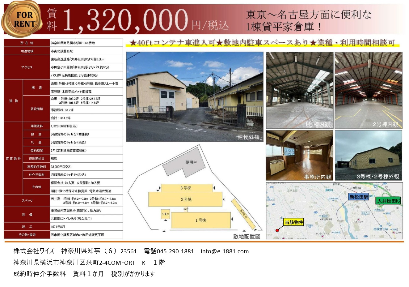 税込 湾岸線IC至近 大型車可 天井高5m以上 24時間365日使用可