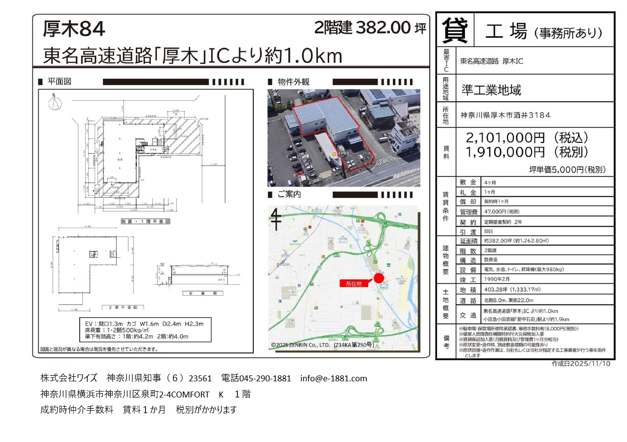 税込 関越道所沢インター至近 10t車・40ftコンテナ車乗り入れ可 高床式 工業地域 メザニン168坪あり 天井高6.4m(2階) 5.3m(3階)
