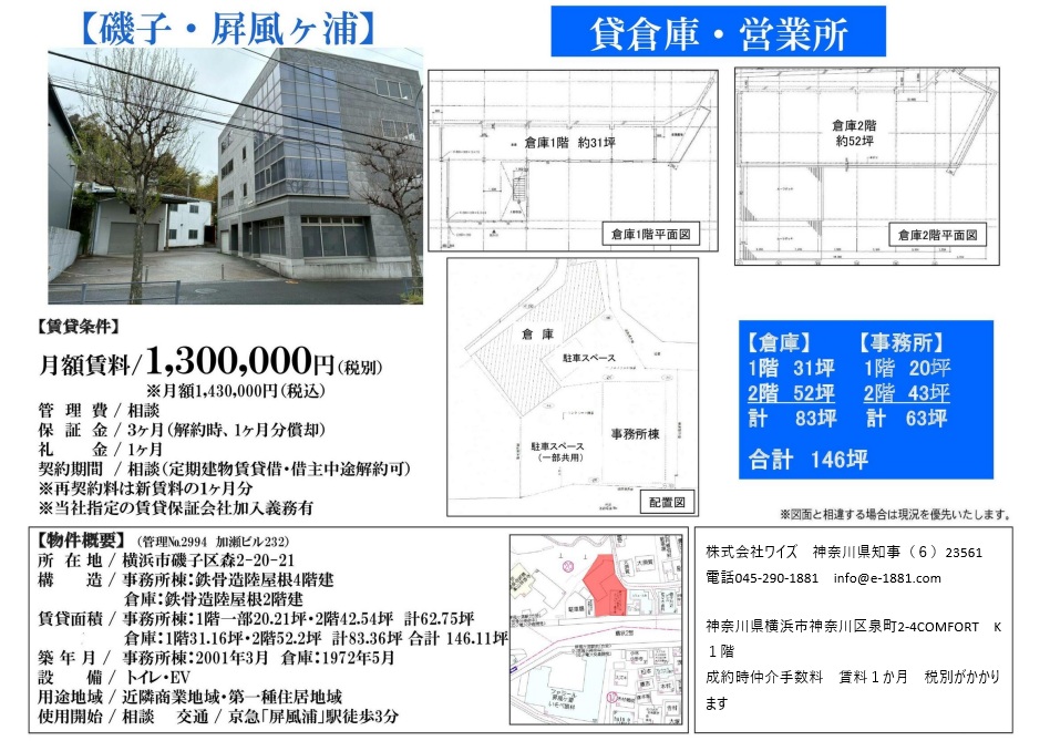 ◆京急線「屏風ヶ浦」駅から徒歩3分アクセス良好!◆事務所棟と倉庫が分かれた機能的な物件です。