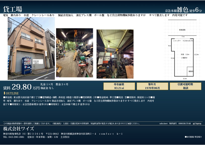 仲池上2丁目工場・倉庫・防音スタジオ1階・中2階・2階